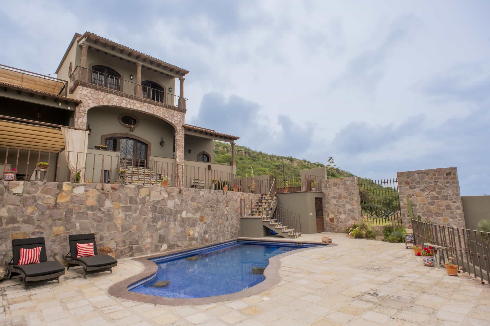 Set among the most captivating landscapes of San Miguel de Allende, this extraordinary residence is a masterpiece by architect Anadelia López. More than a home, it is a private sanctuary where architecture and nature intertwine—offering endless skies, majestic mountains, and serene protected surroundings. With approx. 935 m² of construction on an 18,317 m² lot, the main house features 6 bedrooms, 9 bathrooms, wine cellar, private gym, 3 offices, panoramic terraces, and social spaces that open to breathtaking views. The saltwater pool spans three levels with BBQ area and a loggia equipped for outdoor music and cinema. It includes two guest casitas (one newly built, ~40 m²), solar panels, rainwater harvesting system, 3 covered parking spaces, and 24/7 gated security. An exceptional opportunity to live in style, sustainability, and serenity.
